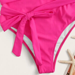 Hot Pink Sexy Women's Beach Open Back Self Tie One Piece Swimsuit