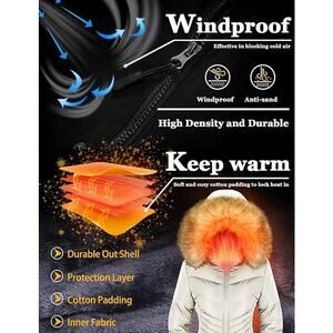 Women's winter thicken coat featuring removable hood with faux fur trim keeps you dry and warm from inclement weather.