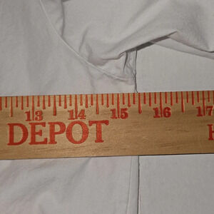 Please note all pictures of wear and stain. See measurements for sizing. Tag washed out size