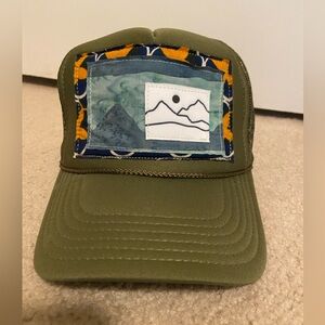 Woman’s hand stitched and handmade trucker hat made in Colorado.