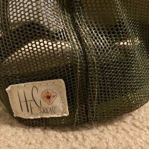 HEC studio trucker hat with custom one of a kind design, green