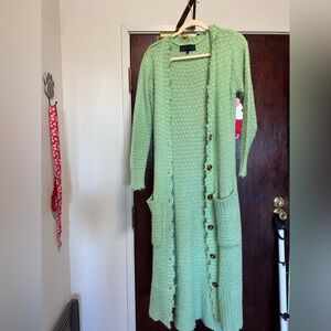 Floor length green sweater. Button up. Brand new condition. Worn once.