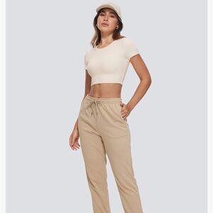 CRZ YOGA Womens Butterluxe Double Lined Short Sleeve Crop Tops Crew Neck Casual Workout T-Shirt Cute Basic Tee