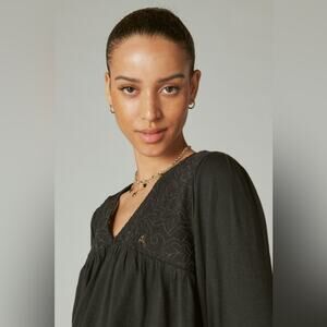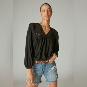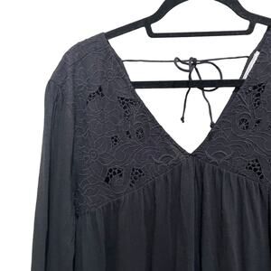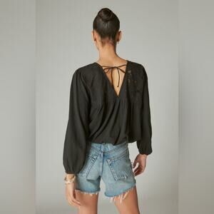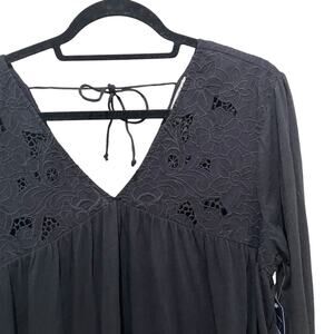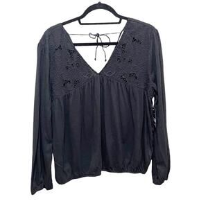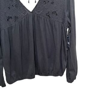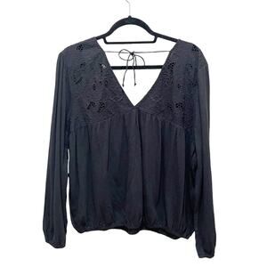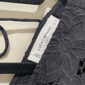 Lucky Brand Floral Cutwork Knit Top Black Size Large