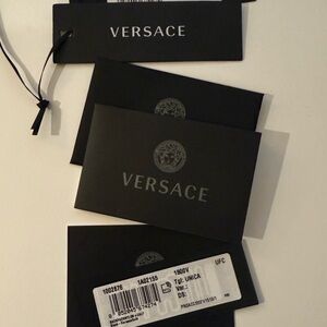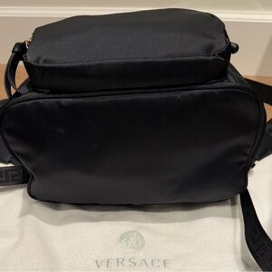 Versace Nylon Medusa Head Backpack in gently used condition. Purchased from Versace Cabazon in 2022. Comes with dust bag and authenticity cards. Approximately 10”Wx6Dx11”H. Clean on inside, pet free smoke free home. Some minor marks on outside and the inside pocket stitching was professionally sewn back together after the threads loosened. Please see photos. Photos show current condition and is priced accordingly.