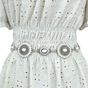 ⚜️ width 0.4" , total length 24" (rhinestone part length) , 44" (rhinestone part plus chain part). Fits waist 25'' to 36'' (Sizes XS to L)