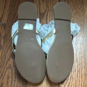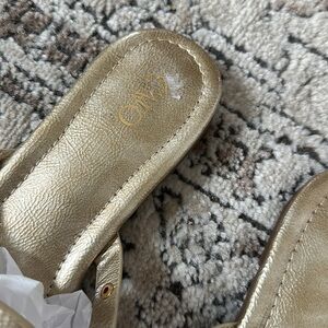 Ladies new not in the box Cato size 9 Stylish gold sandals perfect for any occasion. Comfortable and easy to wear. These sandals are new but have been stored in my closest so a few marks, heel were the tag was pictured below.