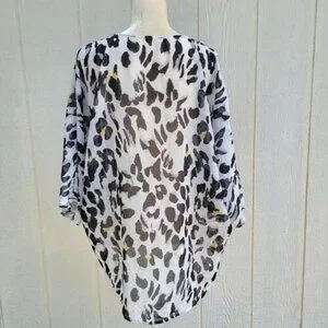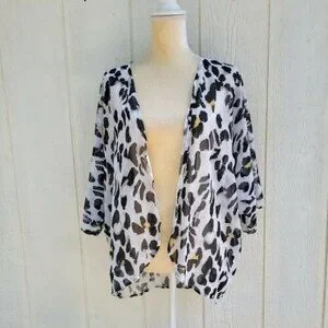 womens leopard print sheer open front cardigan/swim coverup size small.