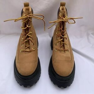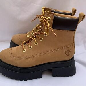 Timberland Women’s Sky 6-Inch 7.5 Lace Up Wheat Nubuck Leather Platform Boots