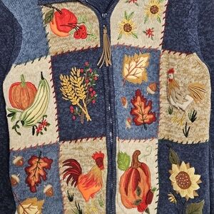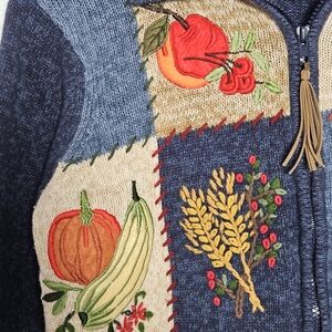 Tiara Vintage Embroidered Fall Patchwork Full Zip Sweater Sz: medium