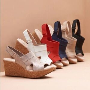NEW Clarks Collection Women's Annadel Ivory Wedge Sandals Nubuck Suede 9.5M