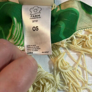 Grab those sandals and let's head to the beach with this amazing boho wrap from Anthropologie Farm Rio. It has gorgeous green and cream florals and leaves with fringe all they way around. Item is NWT but does have the smallest pen mark at the bottom - see pics. Approximate measurements in inches: Length: to the longest point 29;