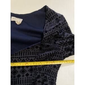 This Anthropologie Meadow Rue dress is a must-have for any wardrobe! The midnight blue velvet fabric is soft and luxurious, making it the perfect choice for any occasion. The fit and flare style of the dress is flattering on any body type, and the knee-length hemline ensures that it is appropriate for both casual and formal events.