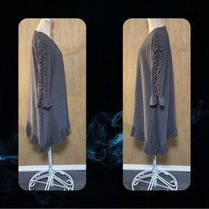 Ruffle detail on the sleeves and ruffles at the bottom