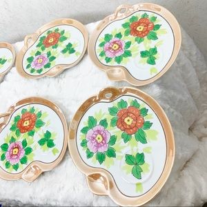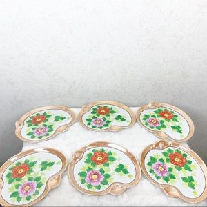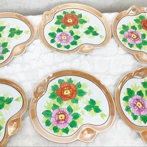 Vintage Seiei & Co Japan 6 floral lusterware snack plates