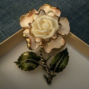The focal piece snaps onto the chain & is interchangeable with other focal pieces in this vintage line of jewelry.