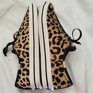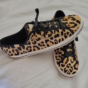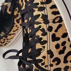 KATE SPADE KEDS. Leopard Animal Print Calf Hair Lace-Up Sneakers Kickstart.