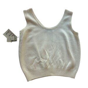 Vintage St. John Sportswear Ivory Cream Wool & Rayon Knit Tank Top Gold Sun Face