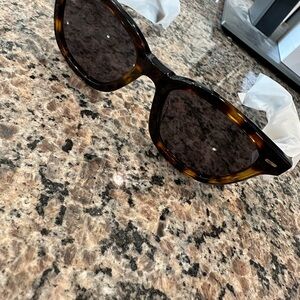 Stylish tortoise shell sunglasses. Comes with a tropical-themed case. Perfect for sunny days. Never worn smoke free pet free home