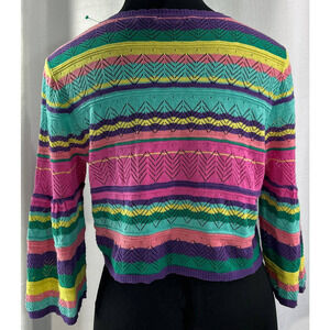 Soft Surroundings Rainbow Colorful Silk Blend Knit Cardigan Sweater Size Large