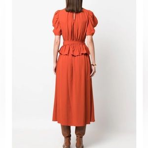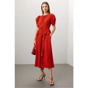 Ulla Johnson, Marion Puff-Sleeve Belted Peplum Midi Dress In Noir Red Size 6