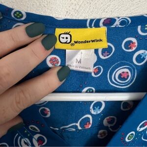 WONDER WINK Scrub Tops Green and Black plus Blue Patterned Women's Size M 2 TOPS
