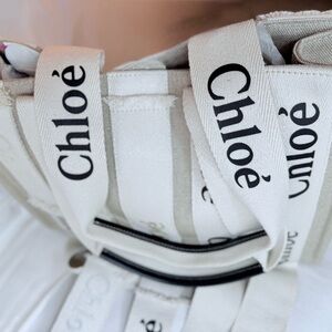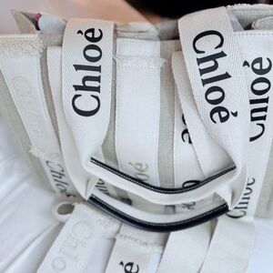 NWT & Dust Bag Chloe Sand Linen Woody Med Logo Tote