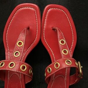 Vintage red leather Prada The Original Car Shoe, believed to be never worn. Gorgeous shoe hoping for a new home. Step out in style with these vibrant red leather sandals. Perfect for any occasion, they offer both comfort and elegance. No original box. Size 39 1/2 = 8.5