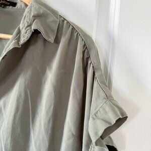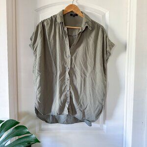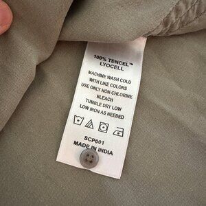 Quince Vintage Wash Tencel Camp Shirt, Olive Green, Size M, Short Sleeve Button