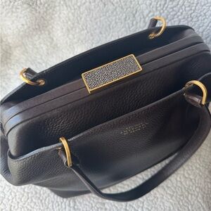 Smythson of Bond Street Agatha Kiss Lock Shoulder Bag in Dark Chocolate