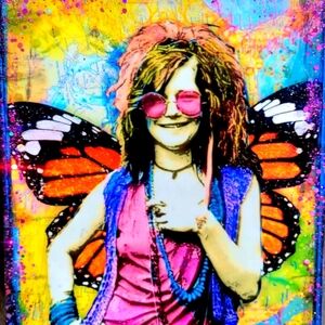 Janis Joplin with Fairy Wings Original Mixed Media Collage Sparkly & Bright