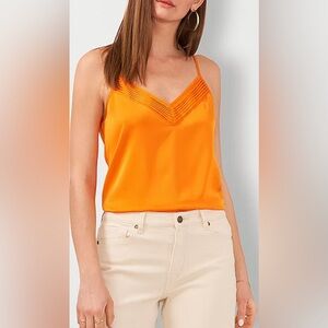 Made from a gorgeous yellow-hued satin fabric, this Sam and Jess women's v-neck camisole is an elevated basic your wardrobe needs. It features adjustable spaghetti straps and a striped neckline trim. Style it with everything from jeans to pants.