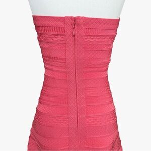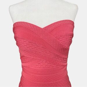 Herve Leger Akari Embossed Bandage Mini Dress Hibiscus Coral Pink Medium NWOT