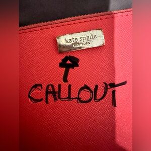 Kate Spade New York wristlet wallet pink/coral color with one call out as seen in picture #4 the metal name plate is slightly scratched otherwise in great condition