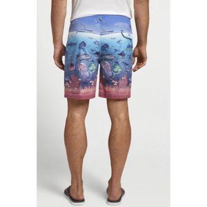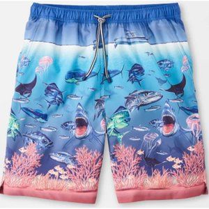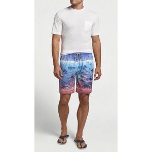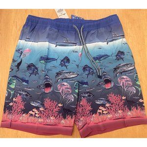Peter Millar Ocean Traffic Swim Trunks Shark Fish Island Blue L