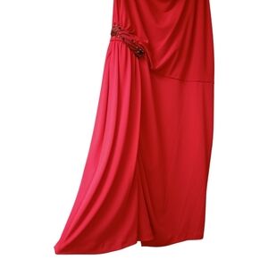 Calvin Klein Vibrant Red 1 Shoulder Dress Beaded Ruched Waist Accent Holidays 14