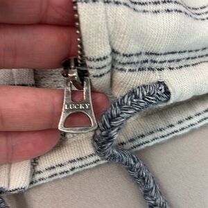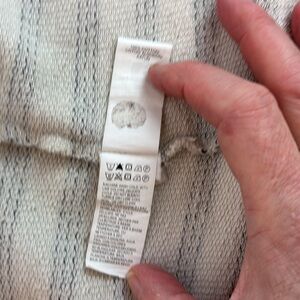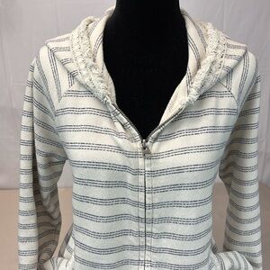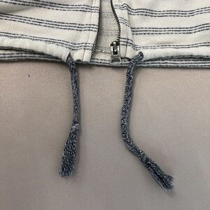 Preloved. Good used condition. Tan with navy stripes. This is a great little hoodie with lots of life left in her. She has a couple little discolorations (Pictured) on it. Other than that she clean and ready for you to wear to a bonfire😊🔥 100% cotton