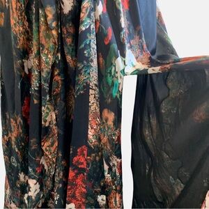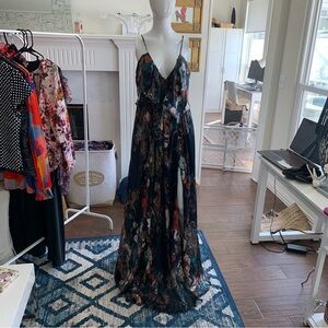 ETXART & PANNO FLORAL SILK MAXI DRESS SPAGHETTI STRAP SILK GOWN