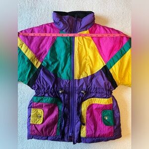 Retro 90s vintage throwback colorblock winter puffy jacket. Child size 6. Unisex.