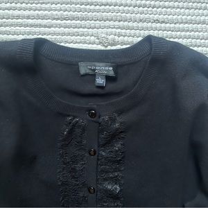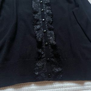 Spence Knits Black 3/4 sleeve Cardigan Sweater Ruffles Large
