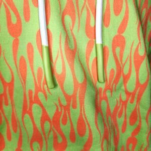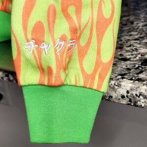 BRAND NEW SNOWDAY HOODIE WITH ORANGE FLAMES AND FLORESCENT GREEN BASE SIZE MEDIUM MSRP $100+