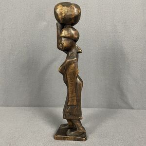 Vintage African Hand Carved Wood Folk Art Tribal Statue Woman Carrying Water