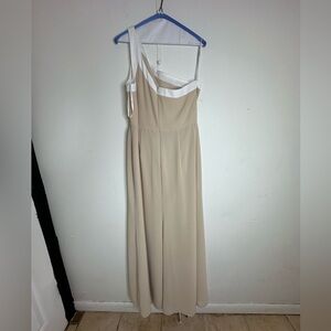 Dessy Group Social Bridesmaid Style 8178IV Palomino Dress Tan and white