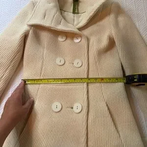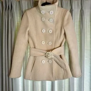 Double breasted pea coat can be worn with or without belt. Fits smaller- 2-4