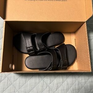 Ahinsa Comfort Slip-on Sandals Black Vegan Leather Buckle Sandals