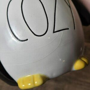 Rae Dunn COZY Penguin w Green Pom Pom Hat Winter Holiday Decor 8"