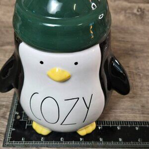 Add a touch of Winter to your decor with the Rae Dunn COZY Penguin. This charming piece features a penguin wearing a green pom pom beanie hat.