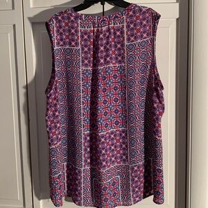 Violet & Claire Red, White & Blue Sleeveless Blouse V-Neck Collar