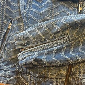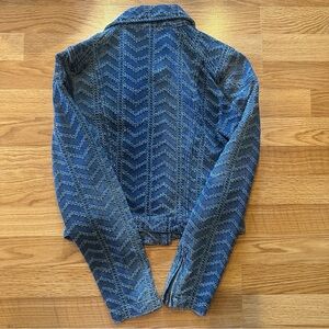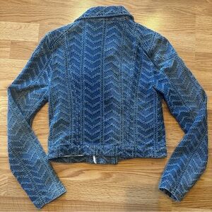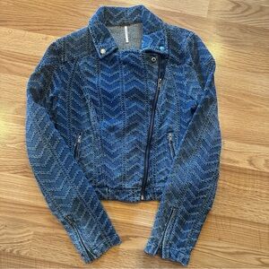 Free People textured denim motorcycle jacket. Size 4. Gently used, excellent condition.