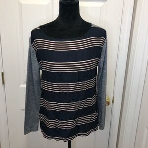 Ann Taylor Loft long sleeve gray and black striped top, size small